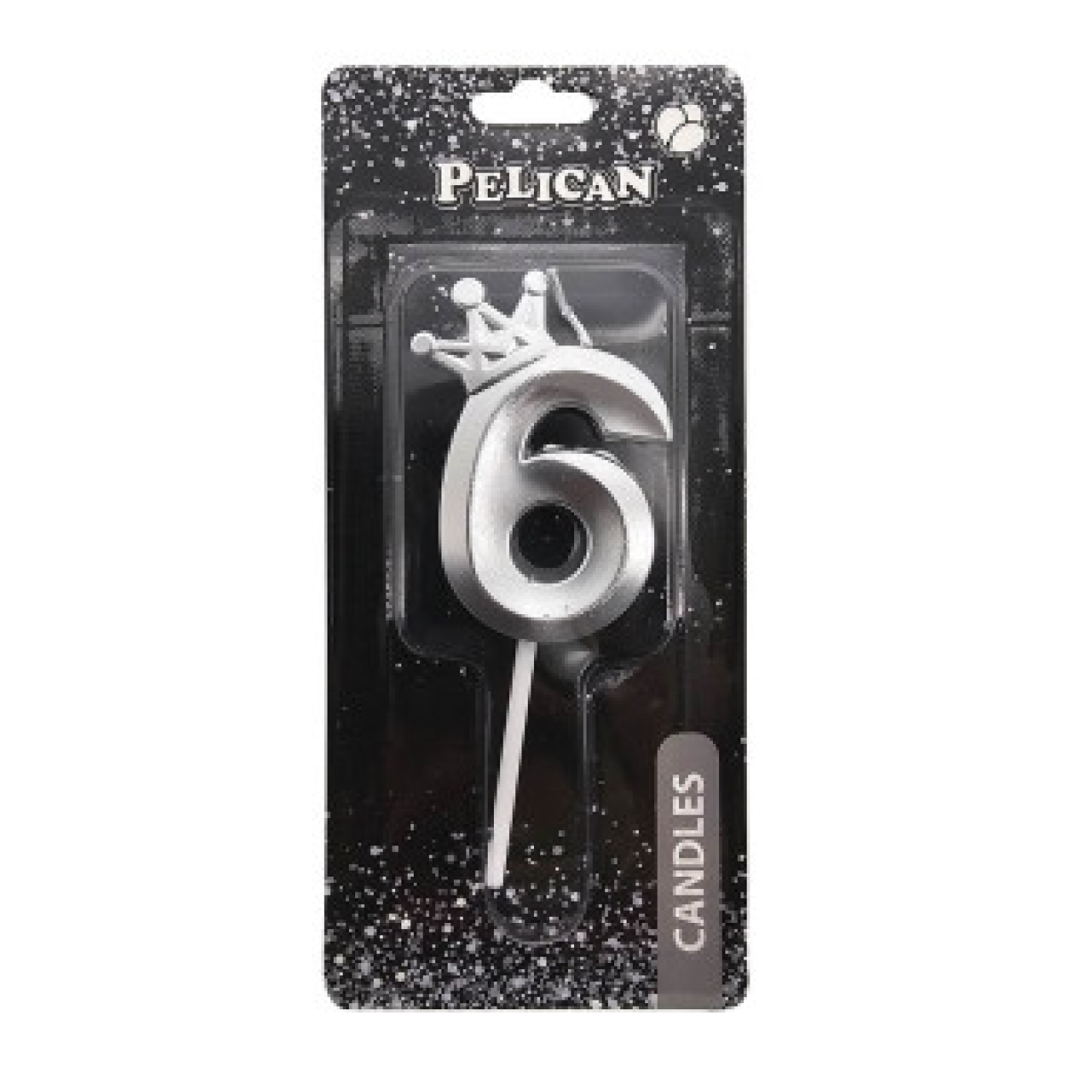 Свічка-цифра 3D з короною “6“ срібло 6см 863116 KNZ