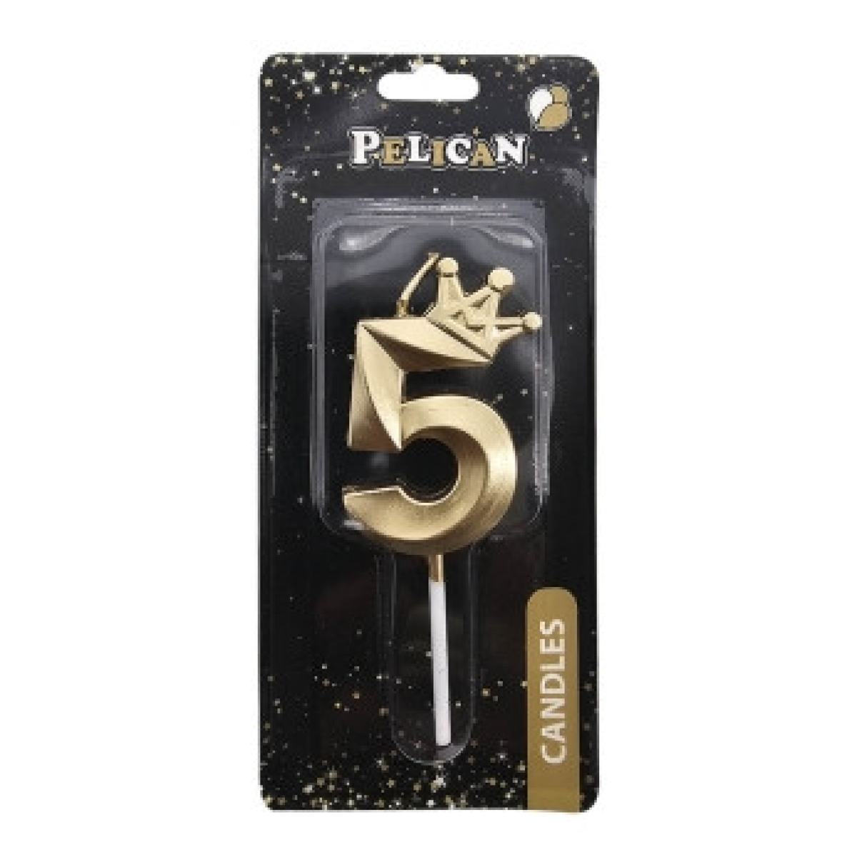 Свічка-цифра 3D з короною “5“ золото 6см 863105 KNZ