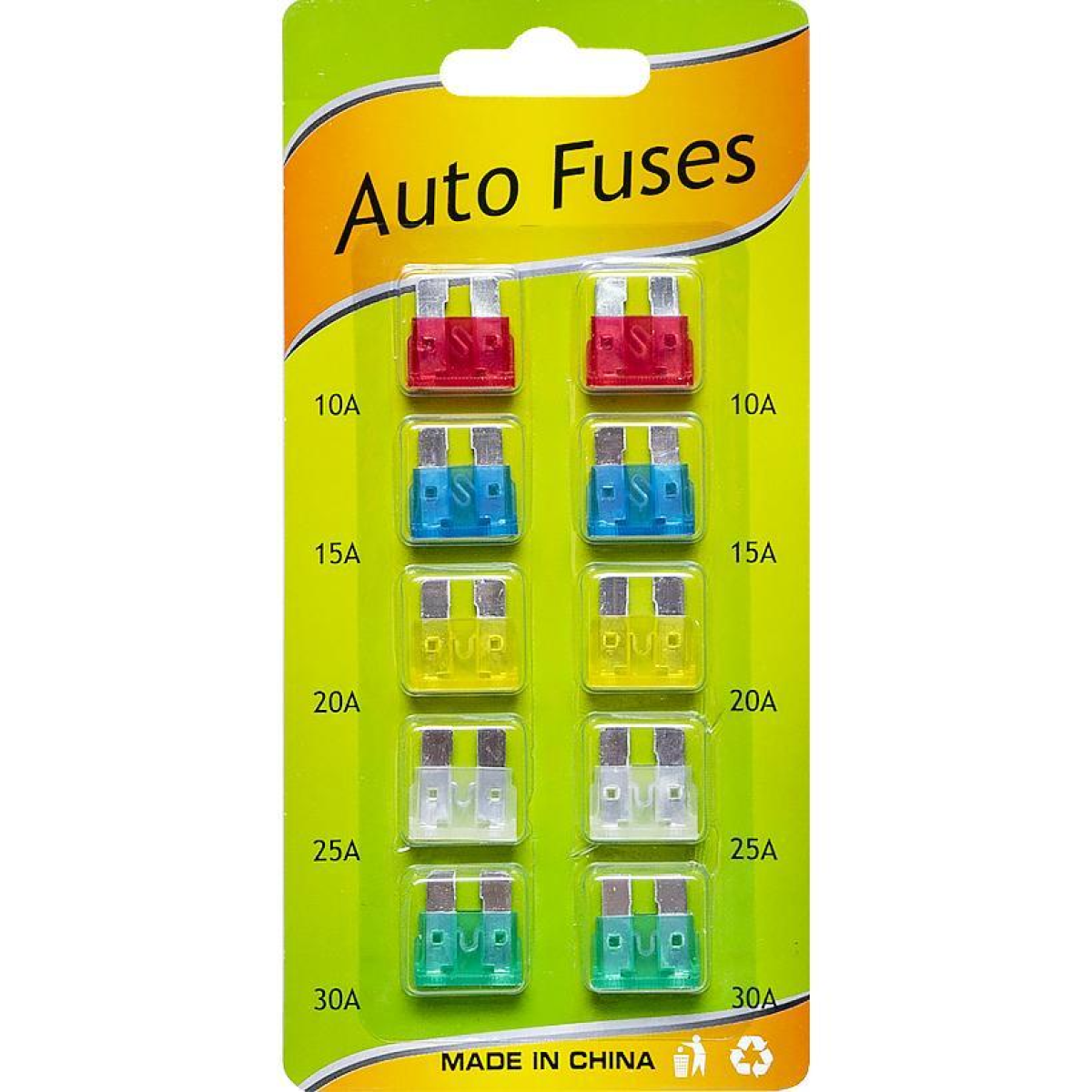 Набір автомобільних запобіжників 10шт (стандарт H=19мм) KNZ
