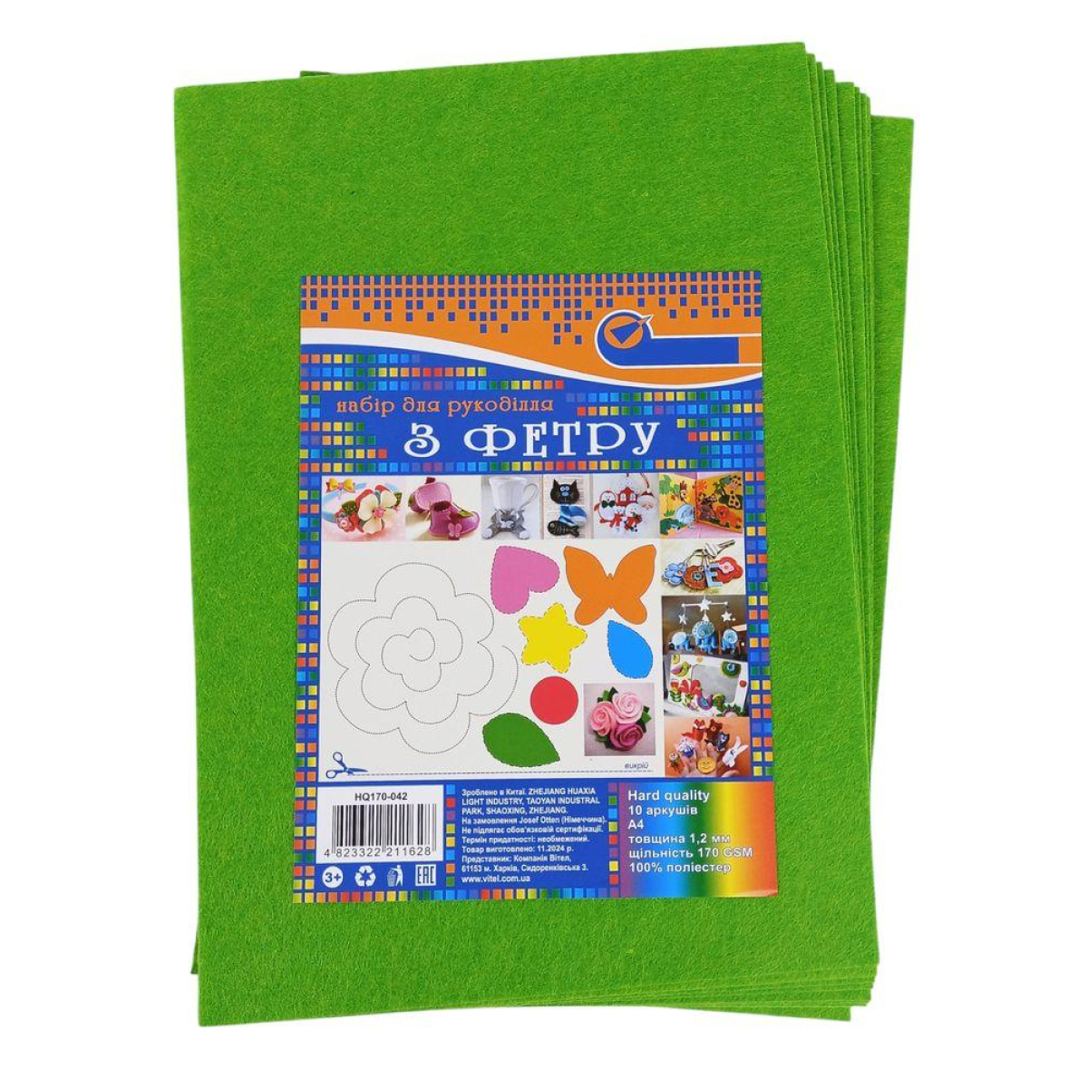 Фетр 20 х 30см 1,2мм 10 листів зелений 170HQ-042 KNZ