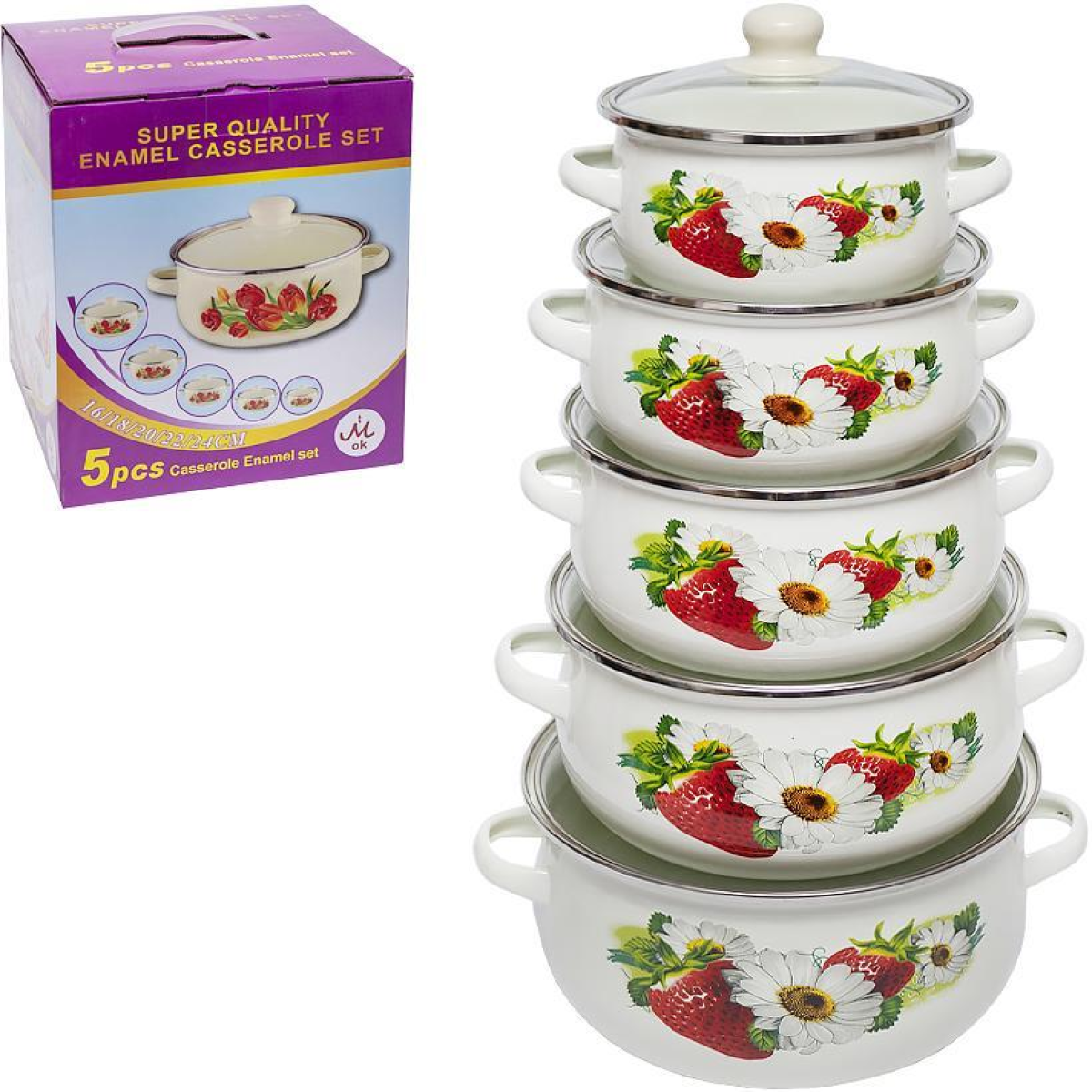 Набір емальованих каструль 5шт 1,1 л/1,6 л/2,3 л/3,1 л/4 л з кришками 673DG-0031 KNZ