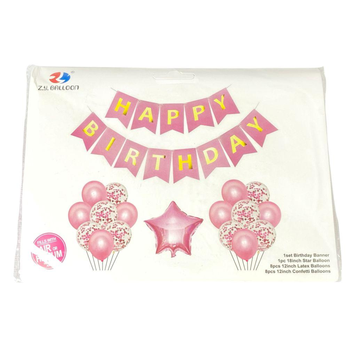 Набір куль із розтяжкою Happy birthday і зірки, рожевий (1210-1-P) KNZ