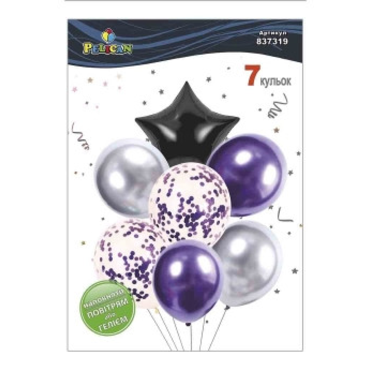 Набір із 7 кульок “Зірка, срібно-фіолетовий мікс із хромом“ Pelican (837319) KNZ