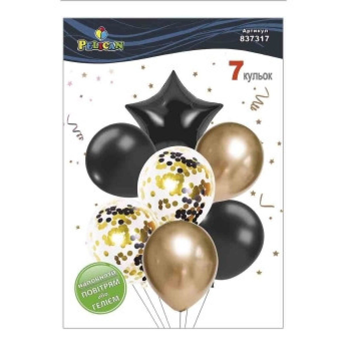 Набір із 7 кульок “Зірка, чорний мікс із золотом“ Pelican (837317) KNZ