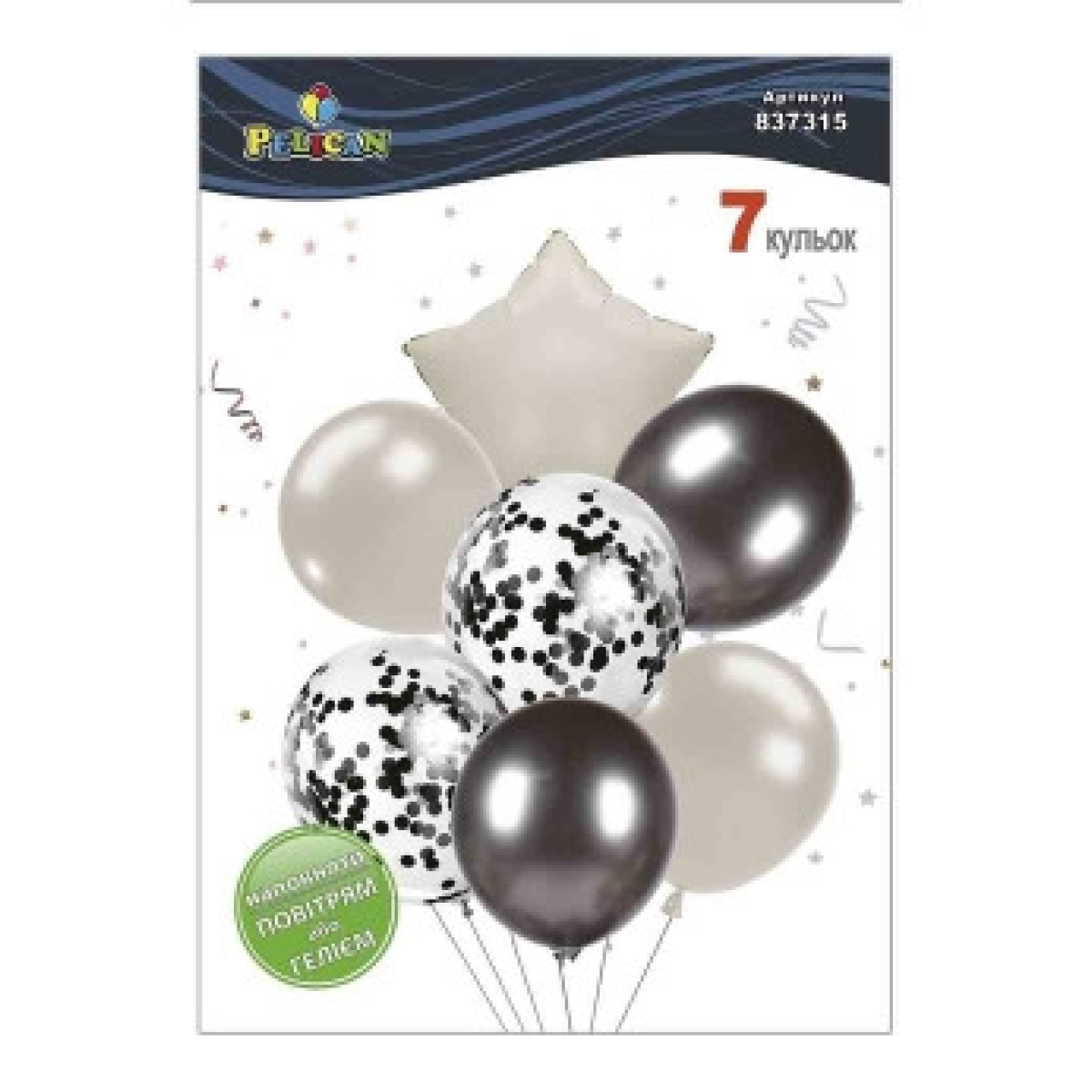 Набір із 7 куль “Зірка, чорно-молочний мікс із хромом“ Pelican (837315) KNZ