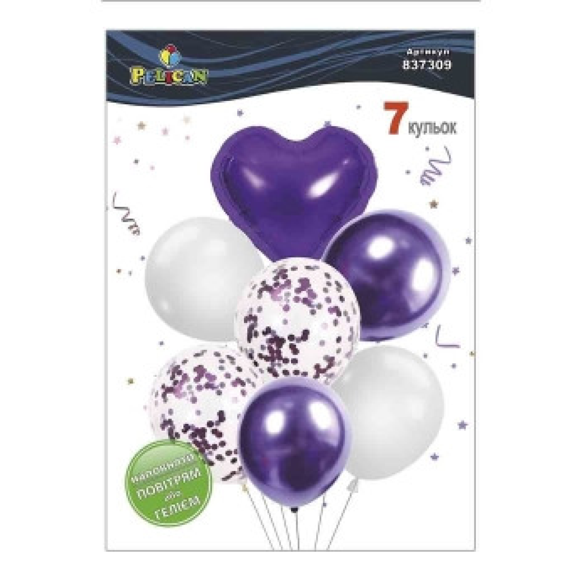 Набір із 7 кульок “Серце, фіолетово-білий мікс з хромом“ Pelican (837309) KNZ