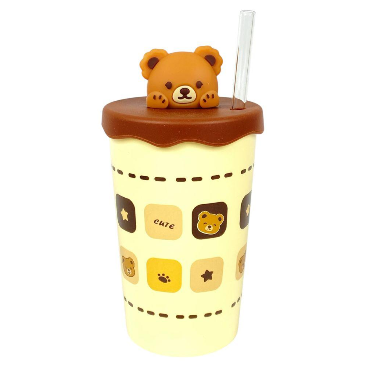 Склянка керамічний 450 мл із силіконовою кришкою і трубочкою “Ведмідь“ (513) KNZ