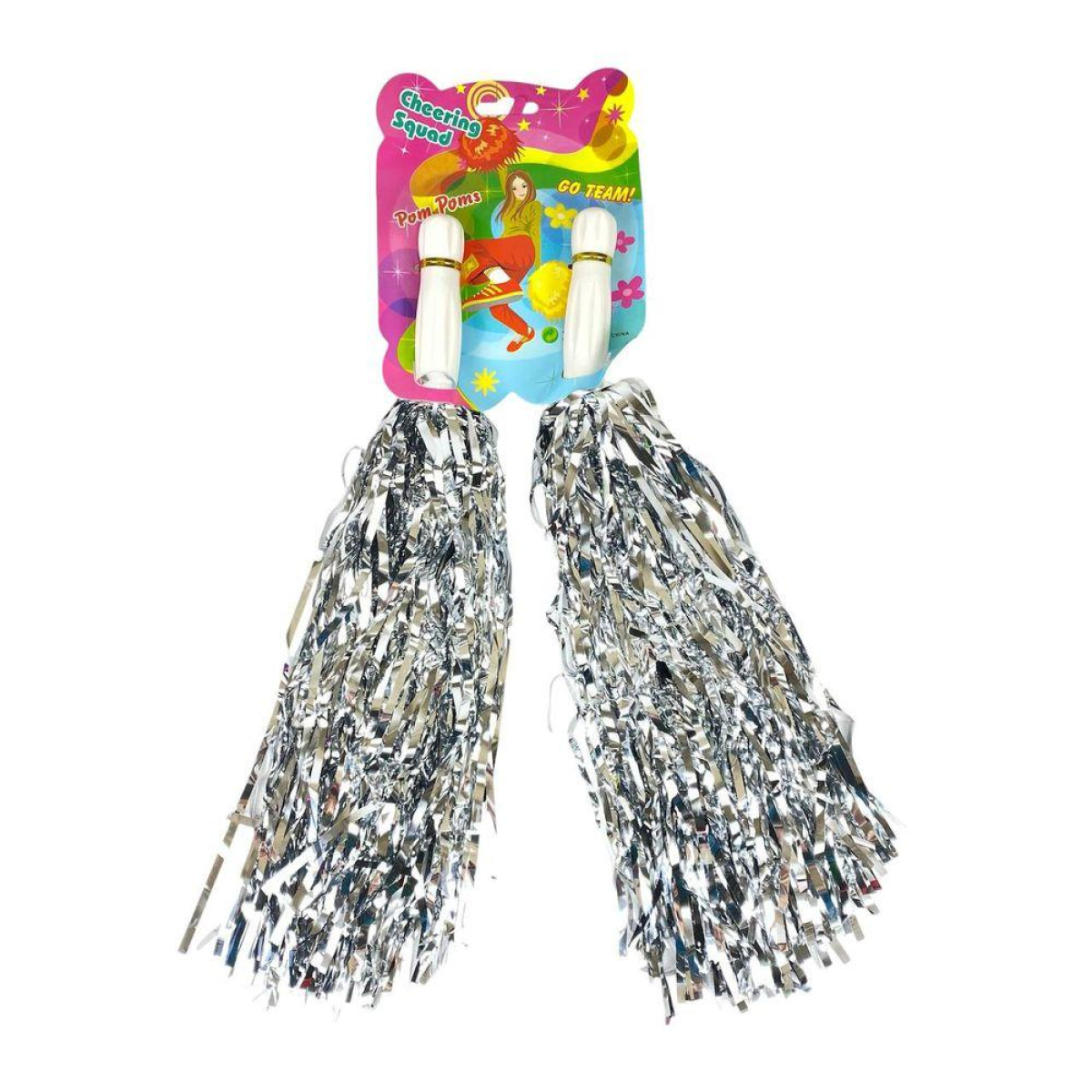 Помпони для чорнидингу та танців срібні 2 шт, з ручкою (0815-100 silver) KNZ