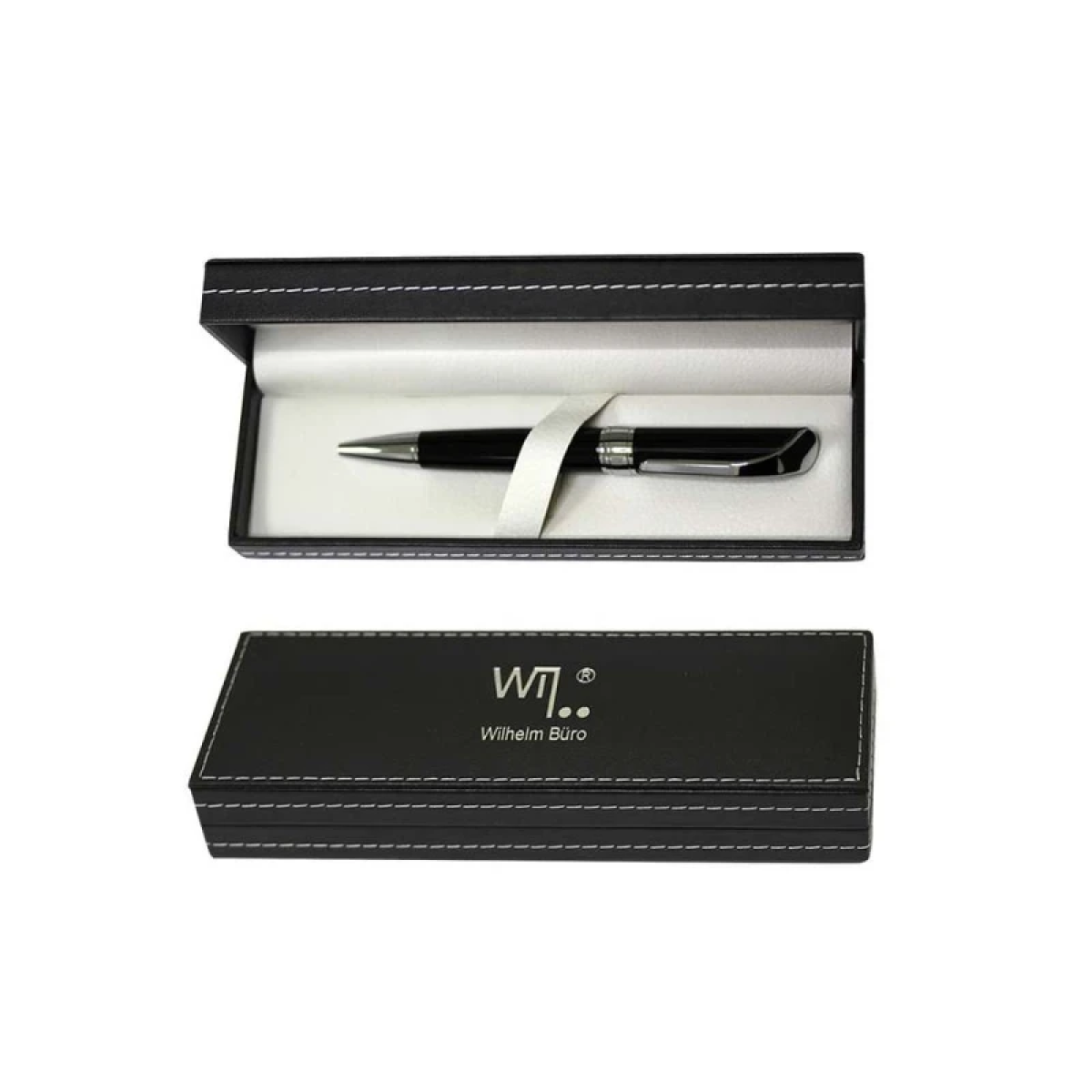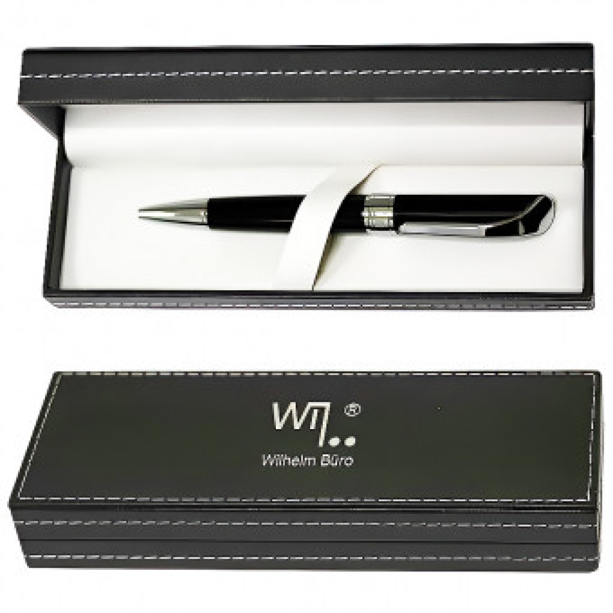 Ручка подарункова кулькова металева в чорному шкірозаміннику футлярі “Wilhelm Buro“ WB121 KNZ