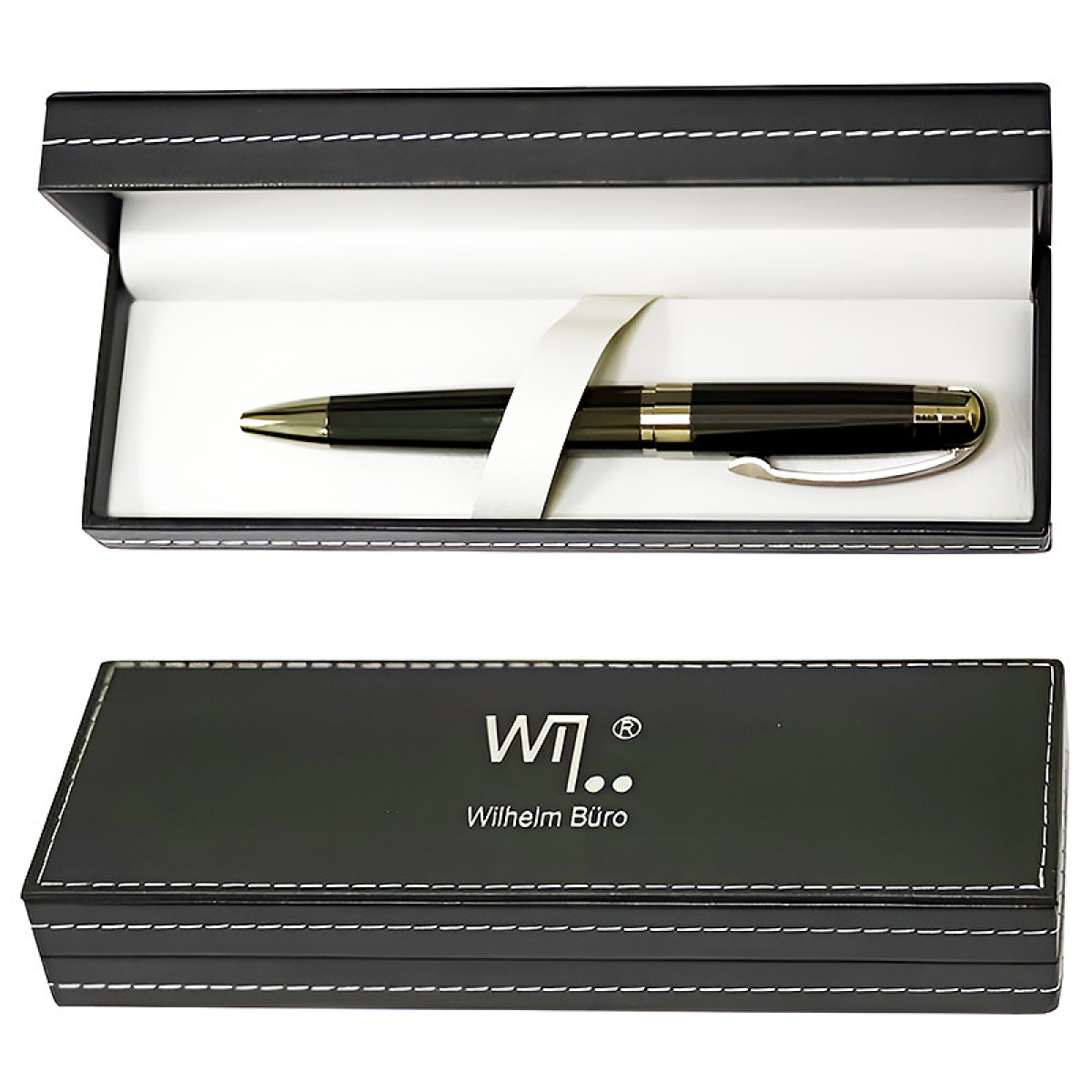 Ручка подарункова кулькова металева в чорному шкірозаміннику футлярі “Wilhelm Buro“ WB122 KNZ