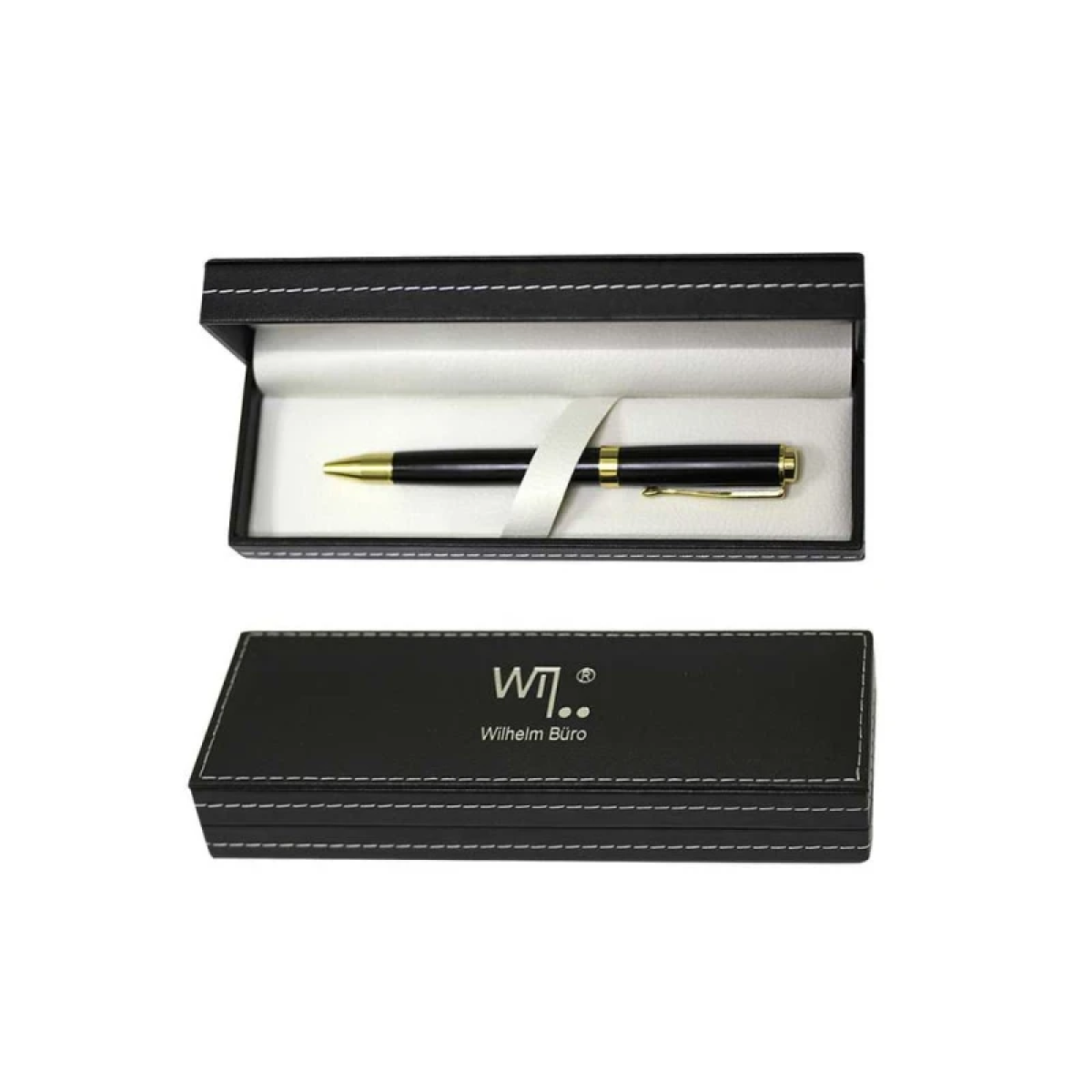 Ручка подарункова кулькова металева в чорному шкірозаміннику футлярі “Wilhelm Buro“ WB123 KNZ
