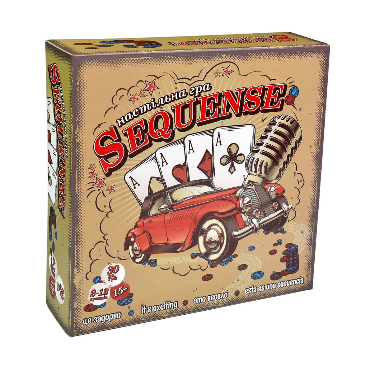 Захоплююча гра з елементами різних стратегічних ігор «Sequense» зможе зацікавити не лише дітей, а й дорослих, дасть можливість захоплююче провести час всій родині, при цьому розвинути уважність, стратегічне мислення та просто розважитися. На ігровому полі необхідно збудувати послідовність фішок однакового кольору, які встановлюються залежно від зіграних карток. Але це ще не все! Самі фішки можуть зніматися залежно від правил – продумайте свої ходи та стратегію. Гра викликає інтерес з перших ходів!