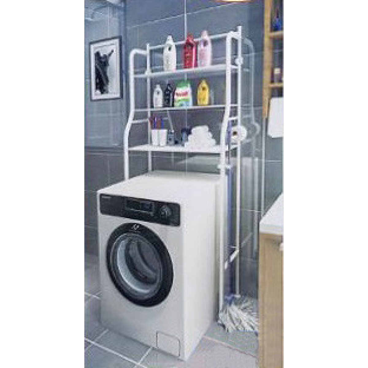 Настінний стелаж (полиця) над пральною машиною – зручне та практичне рішення для організації простору у ванній кімнаті! Конструкція виконана з металу, що забезпечує міцність та довговічність. Компактний розмір (65×25×152 см) дозволяє ефективно використовувати простір над пральною машиною, створюючи додаткове місце для зберігання миючих засобів, рушників та побутового приладдя.