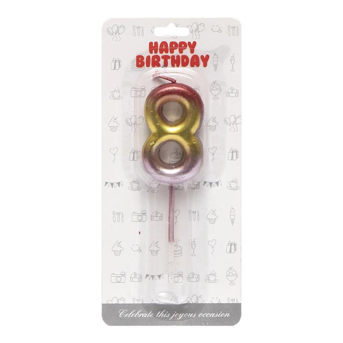 Свічка-цифра в торт “8“ металік різнокольорова JY-1065 KNZ