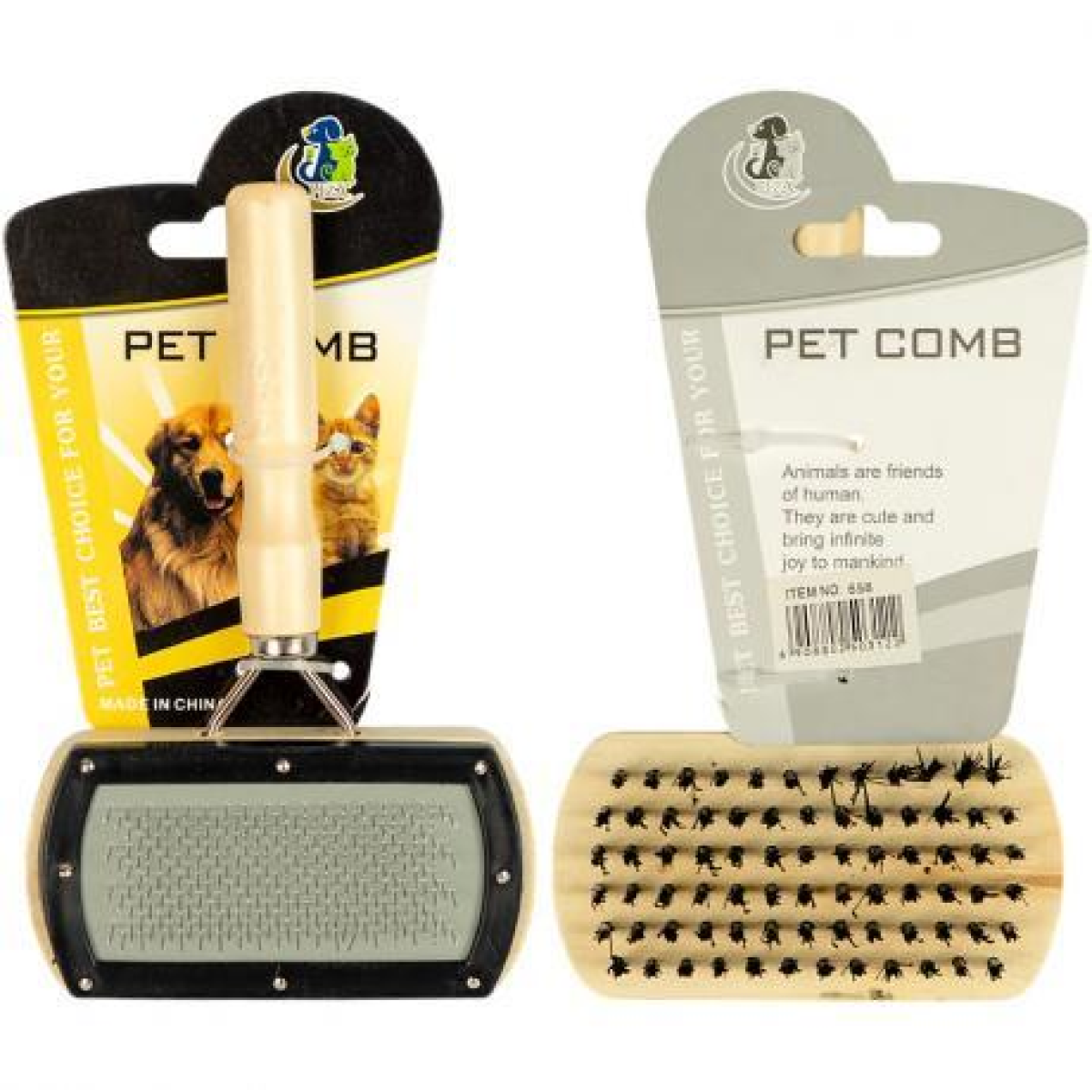 Щітка-пуходерка для котів і собак із дерев'яною ручкою — універсальний інструмент для щоденного догляду за шерстю. З одного боку — металева пуходерка для ефективного видалення підшерстку, ковтунів і випалої шерсті, з іншого — щітка з синтетичної щетини для м'якого розчісування та завершального догляду. Ергономічна дерев'яна ручка забезпечує зручність і контроль під час розчісування. Підходить для всіх типів шерсті. Ідеальний вибір для зоомагазинів, грумінг-салонів та домашнього використання.