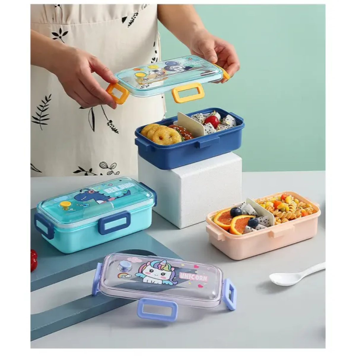 Дитячий контейнер для їжі “Unicorn“ ланч-бокс з роздільниками та приладами KNZ