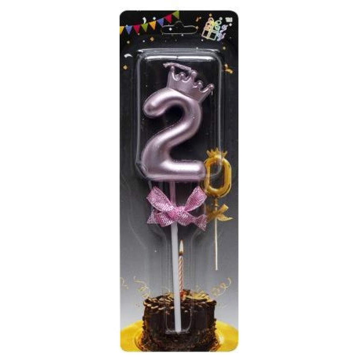Свічка-цифра “2“ з короною 5,5см РОЖЕВА JY-1064 KNZ