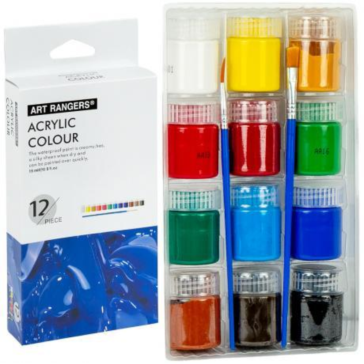 Фарба акрилова 15мл “Art Ranger“ 12 кольорів “Acrylic“ з пензлями A12015-1 KNZ