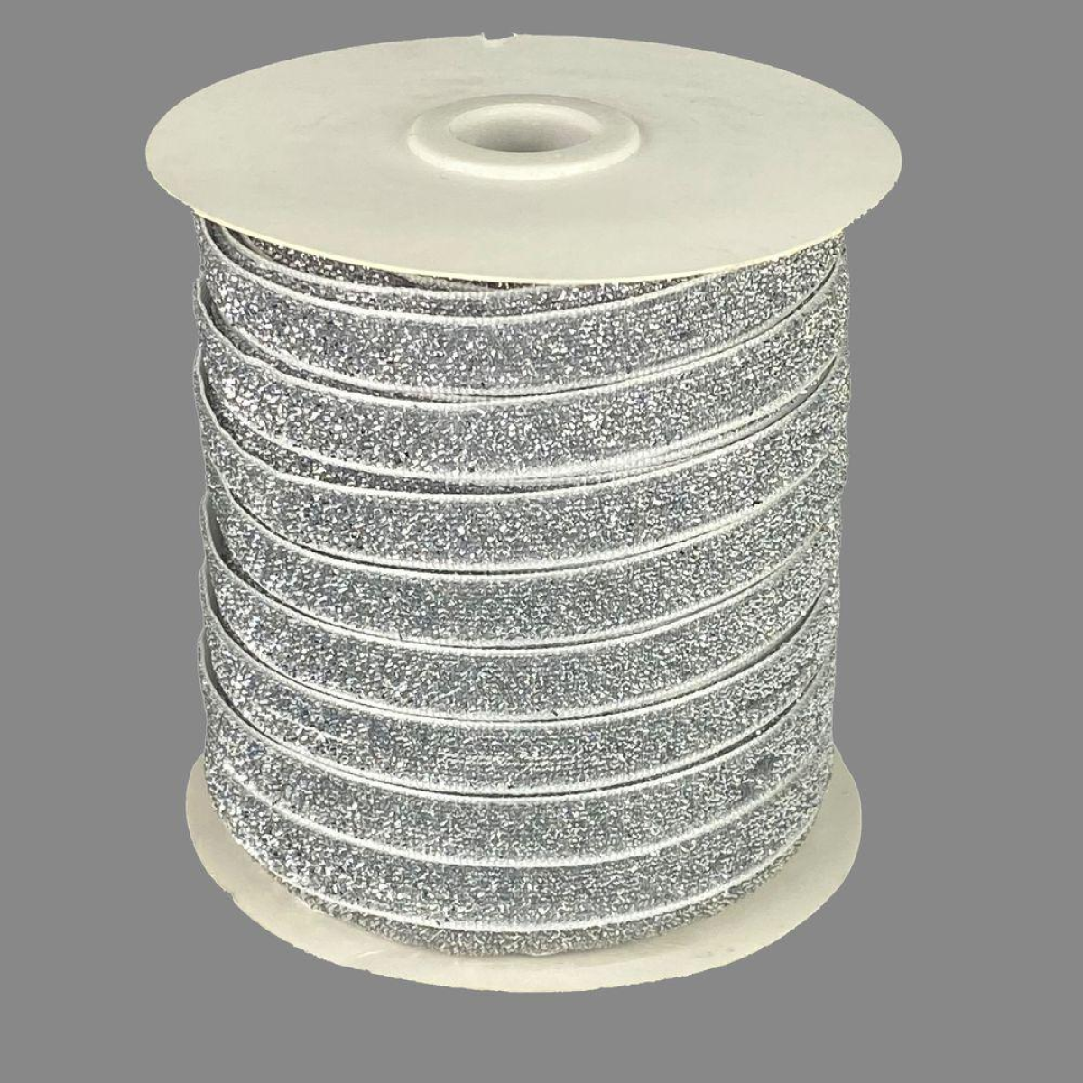 Оксамитова стрічка з люрексом 1,0 см х 50 ярдів Сірий Marill (D00710-11)