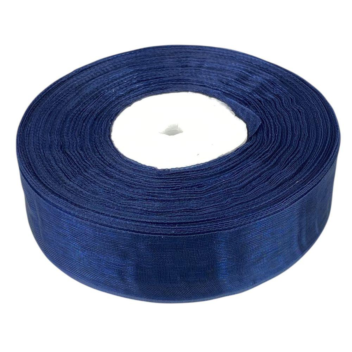 Стрічка з органзи темно-синя 2,5 см х 50 ярдів Синій Marill (D02025-bk19)