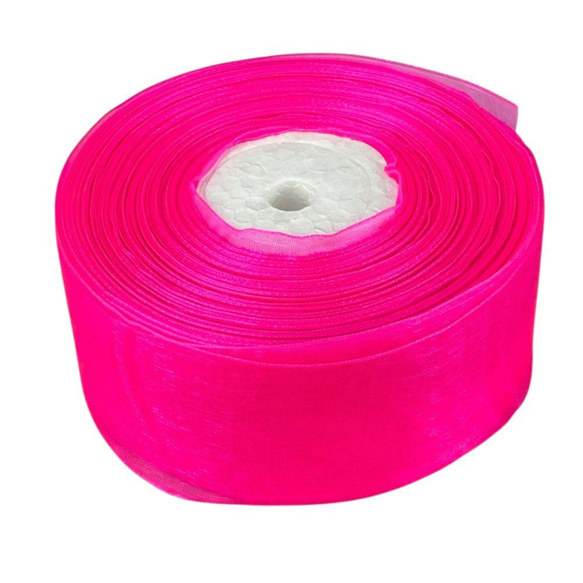 Стрічка з органзи яскраво рожева 4,0 см х 50 ярдів Рожевий Marill (D02040-014)