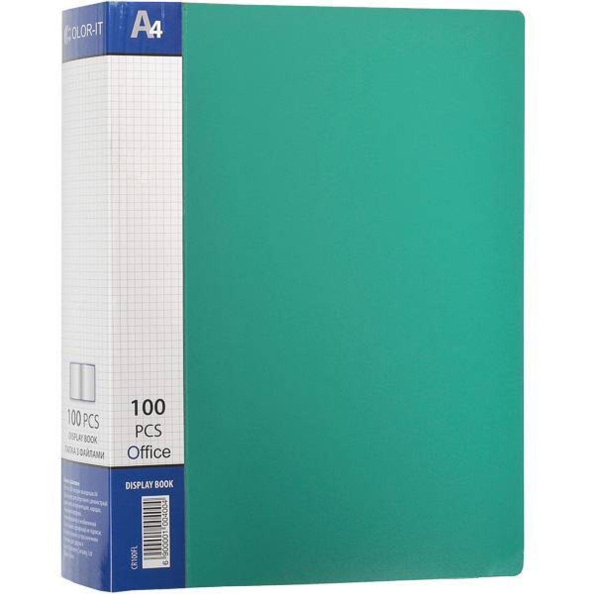 Папка пластикова А4 з 100 файлами, дисплей-книжка на 100 файлів для паперів “С“ Зелена KNZ