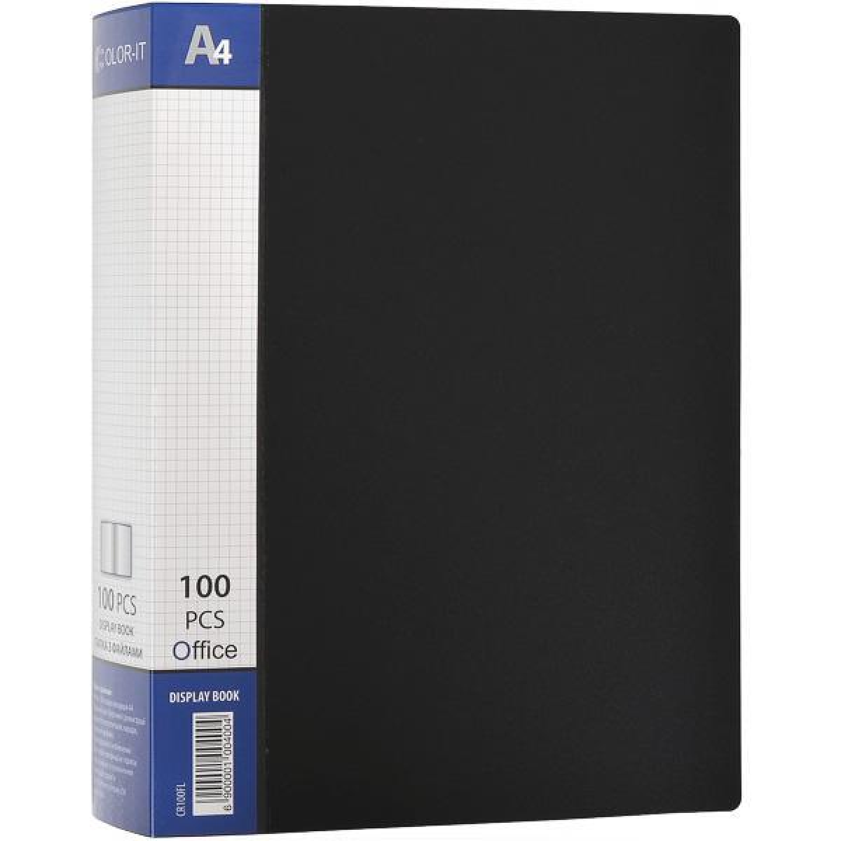 Папка пластикова А4 з 100 файлами, дисплей-книжка на 100 файлів для паперів “С“ Чорна KNZ