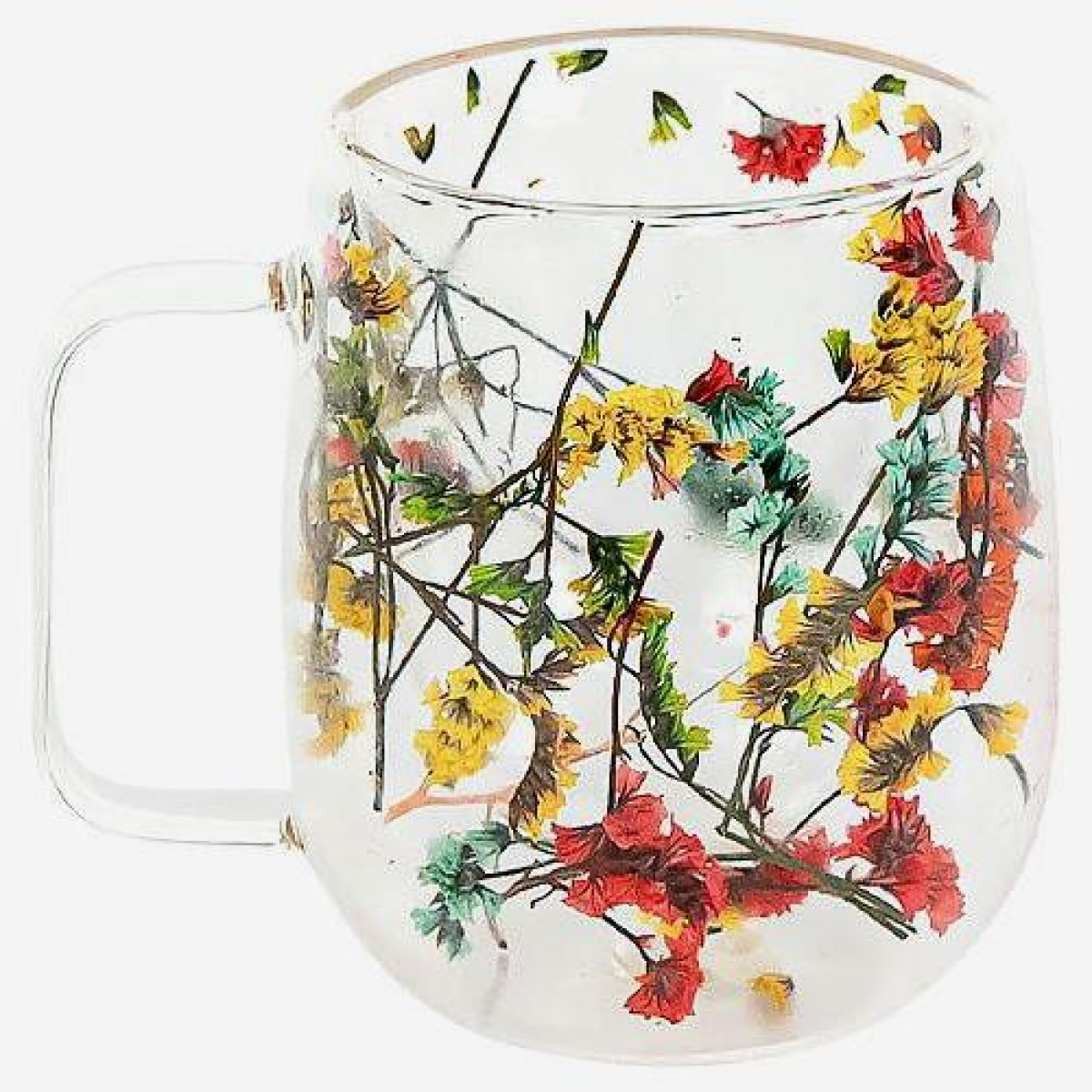 Чашка з подвійним дном 250мл скло з квітами NEW KNZ