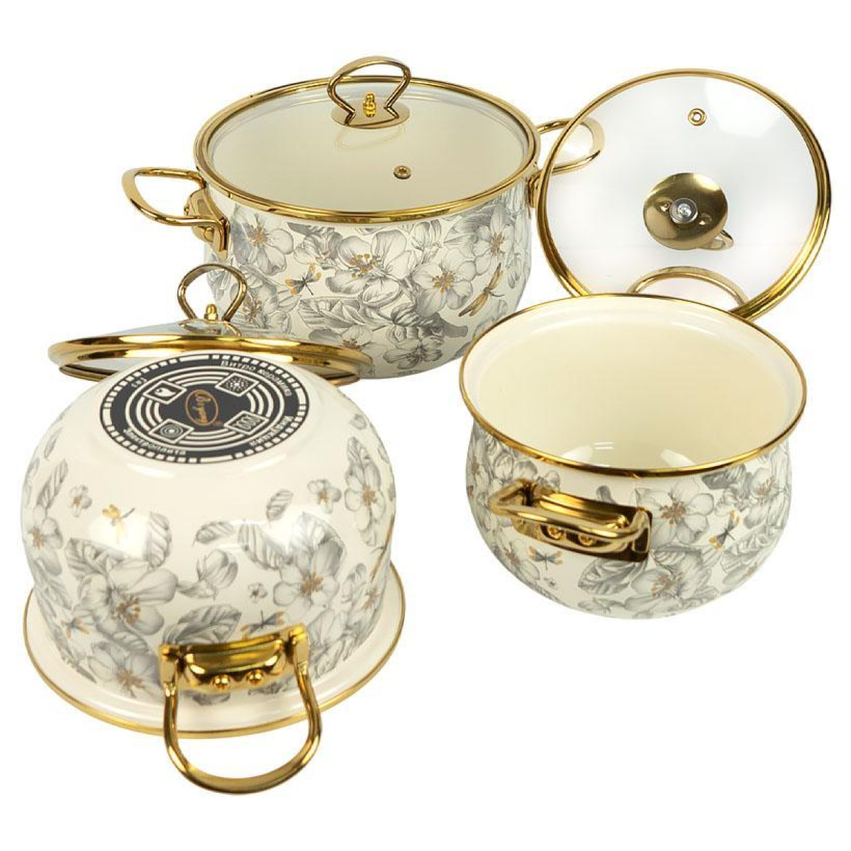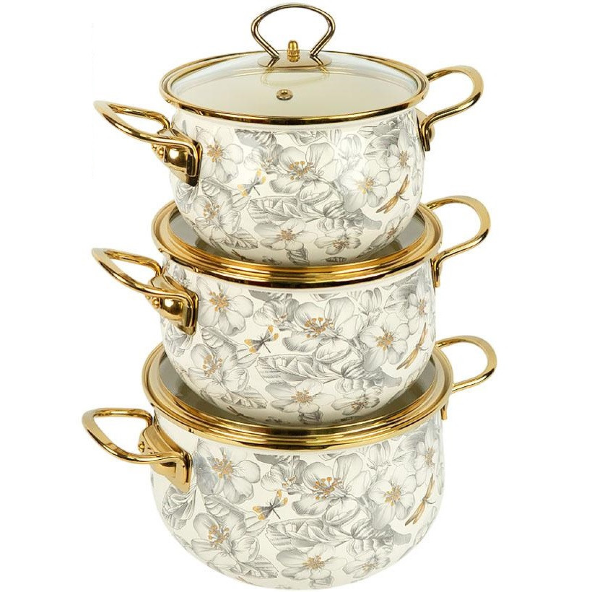 Набір емальованих каструль 3 шт із кришками D18/20/22 см 7043-8