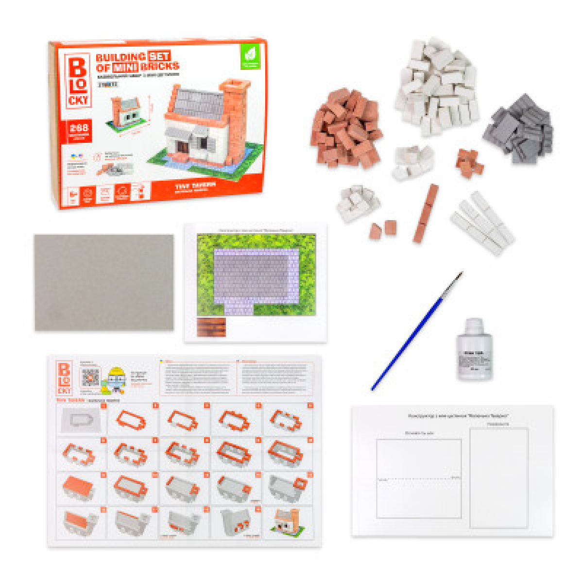 ♦ Комплектація: коробка, цеглинки - 268 ел., клей ПВА, пензлик - 1 шт., комплект додаткових елементів - 1 шт., інструкція.