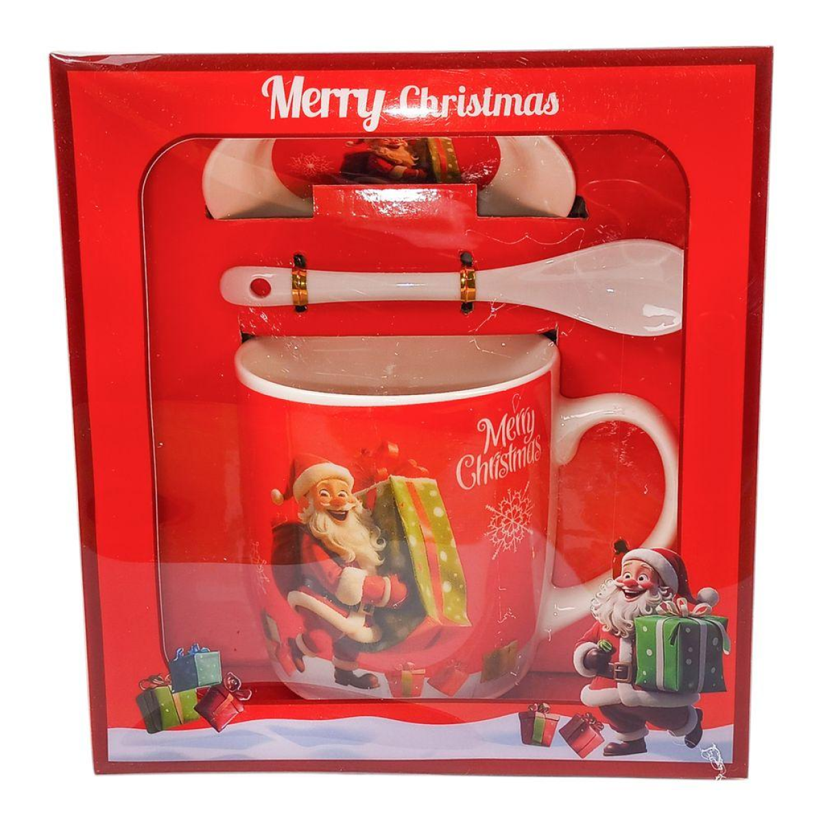 Чашка керамічна 350 мл “Санта Клаус з подарунком“ з блюдцем, ложкою в подарунок HK-2168-B KNZ