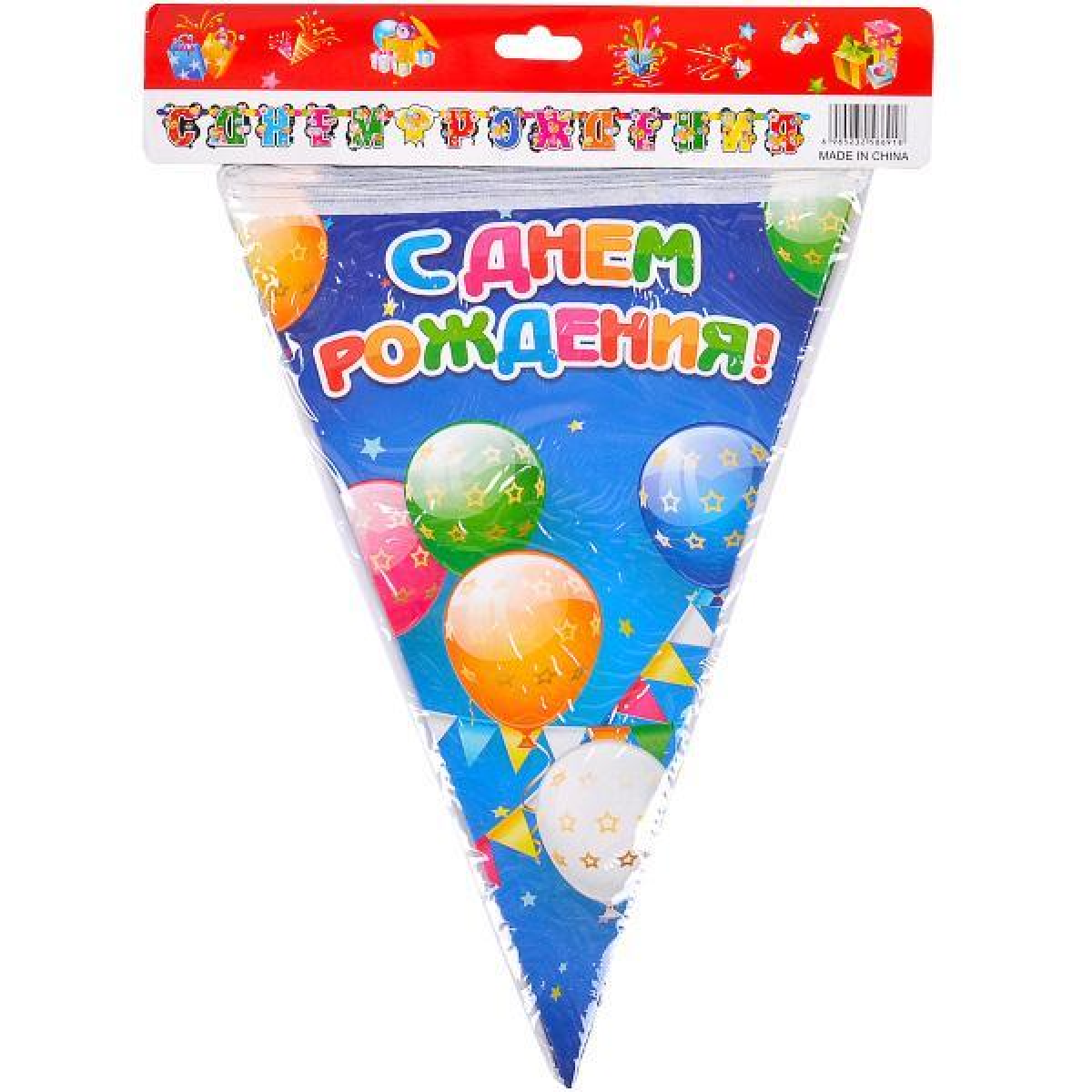 Гірлянда прапорці “З Днем народження“ 2м рос мова 10-49 KNZ