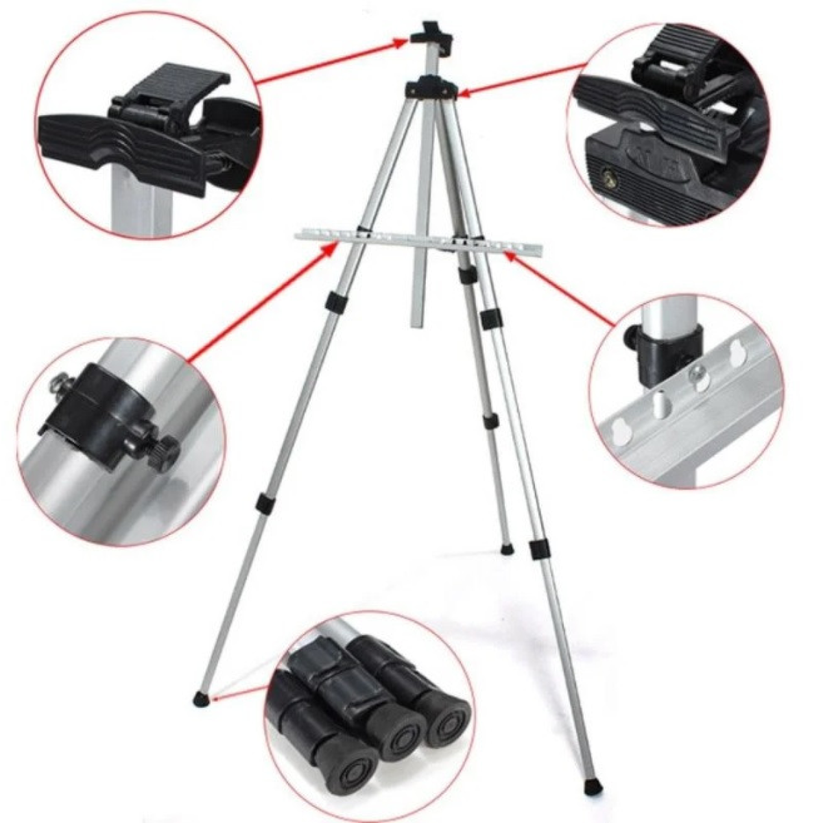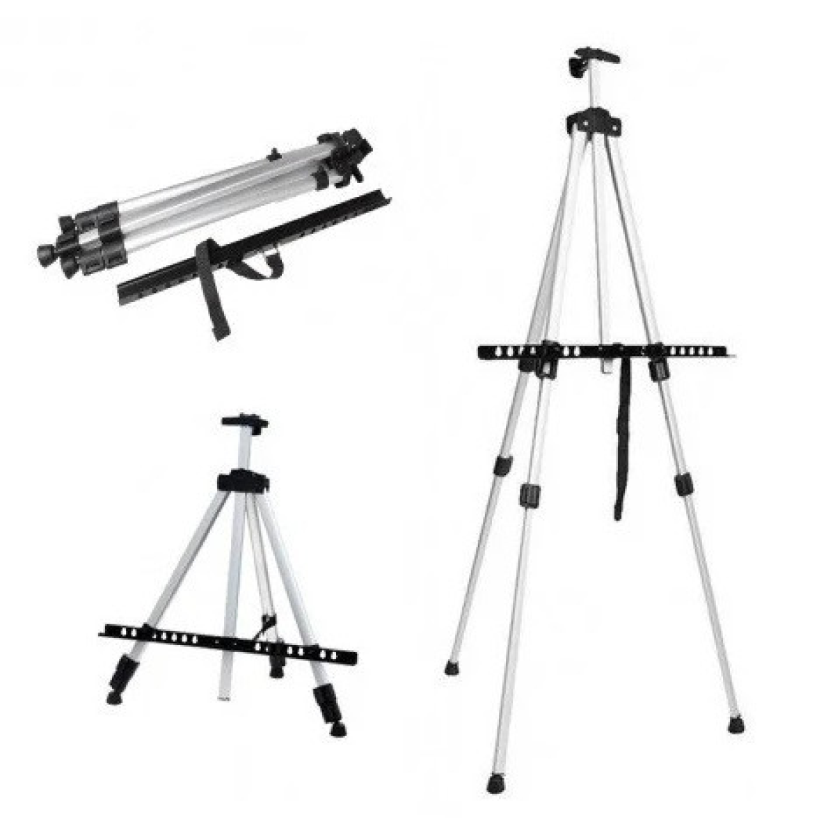 Легкий розкладний алюмінієвий мольберт! Зручний під час транспортування – чудовий вибір, якщо ви плануєте написати краєвид на природі. Алюмінієвий мольберт дуже практичний у роботі аквареллю, оскільки дозволяє оперативно та кардинально змінювати кут нахилу робочої поверхні. Завдяки своїй легкості і простоті складання, ця тринога може використовуватися як професіоналами, так і художниками-початківцями. Чохол входить до комплекту. Чохол захистить мольберт від дощу, а також збереже цілісність мольберта. Можна використовувати на підлозі та на столі. Підходить для дорослих та дітей.