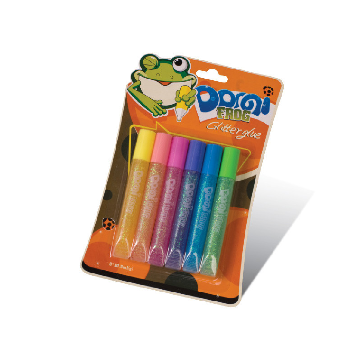 Клей силіконовий з блискітками на картоні “Domi Frog“ (3D/6 кольорів 10,5 мл) KNZ