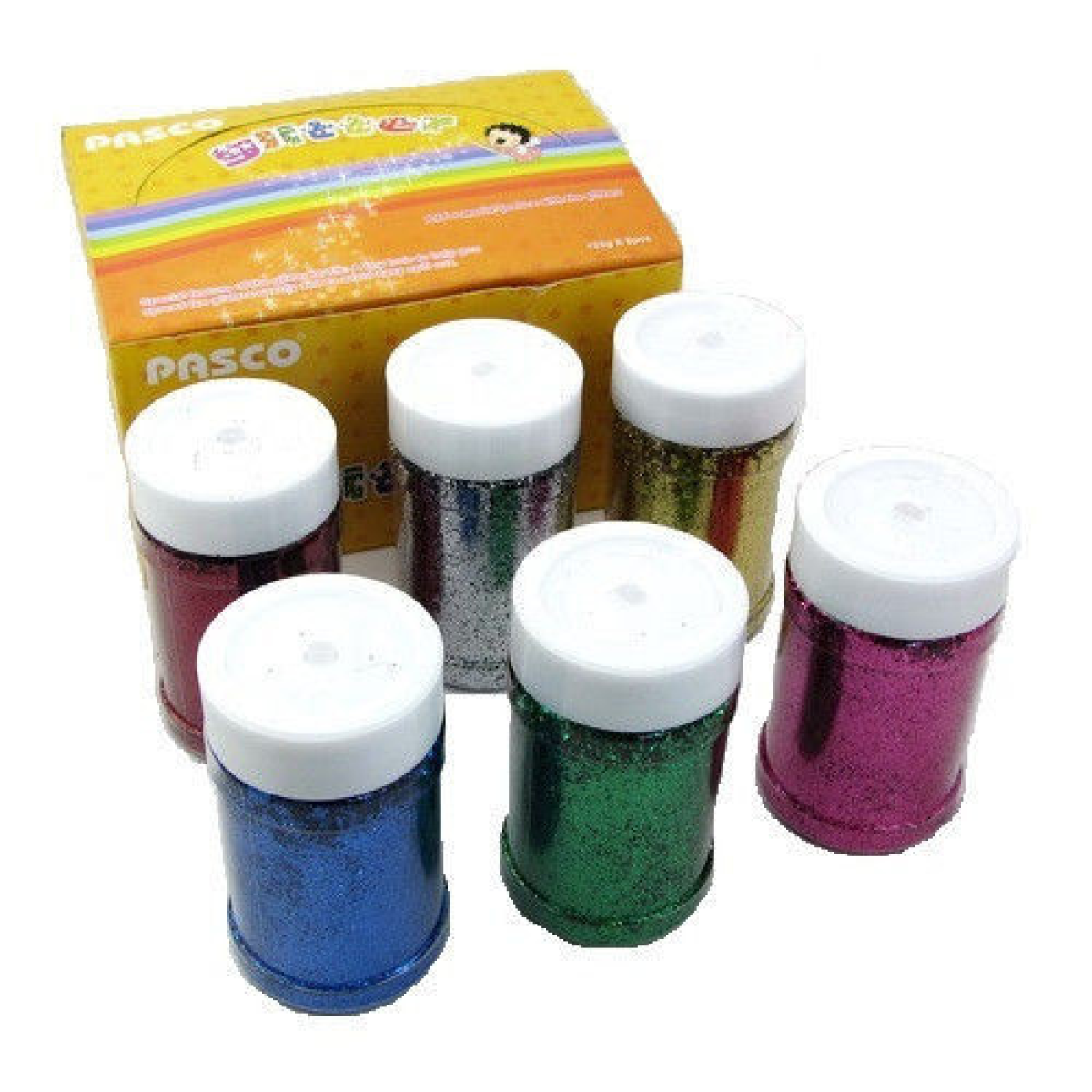Набір блискіток 6 кольорів у банках по 125 гр Pasco (дрібний глітер-пісок) KNZ