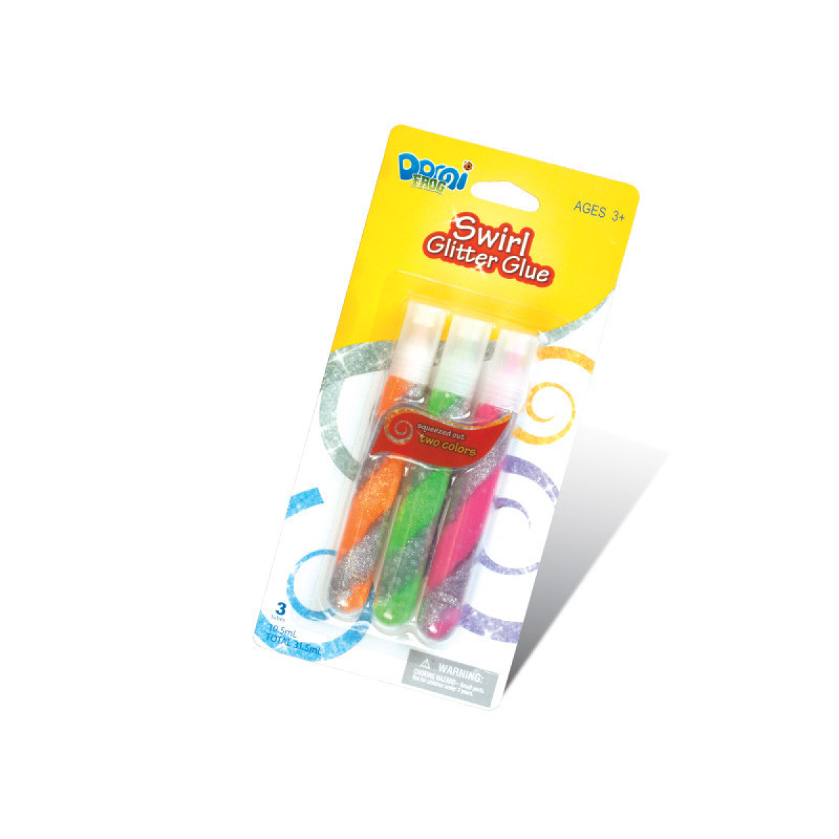 Клей силіконовий з блискітками на картоні “Domi Frog“ Swirl двоколірна спіраль (3 кольори, 10,5 мл ) KNZ