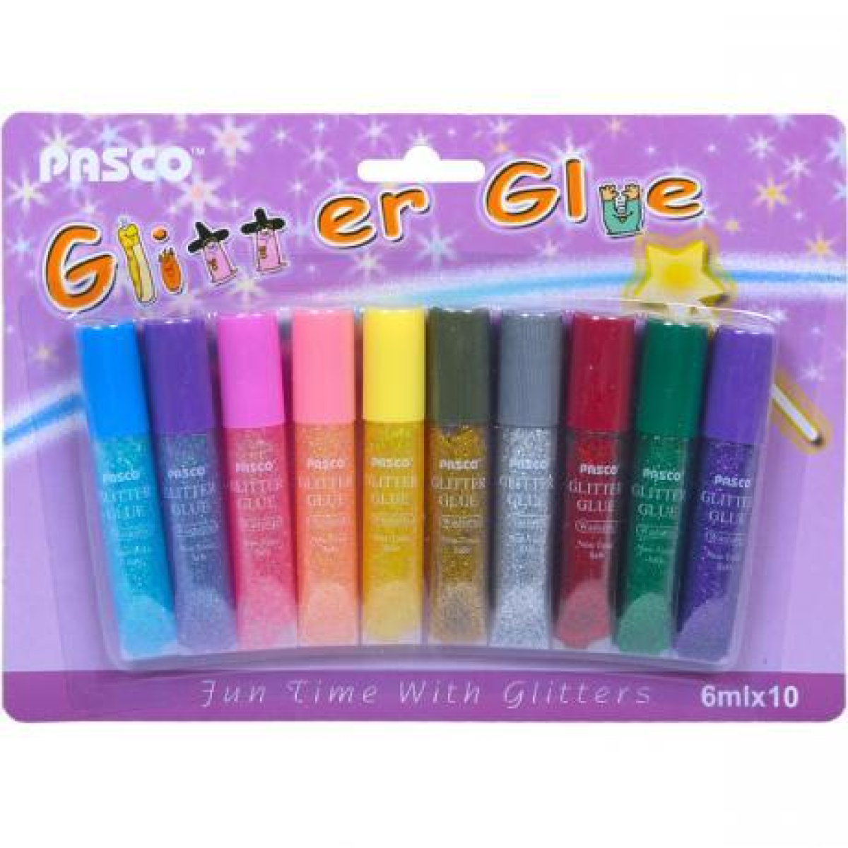 Клей силіконовий з блискітками на картоні “Pasco“ (10 кольорів, 6 мл ) KNZ