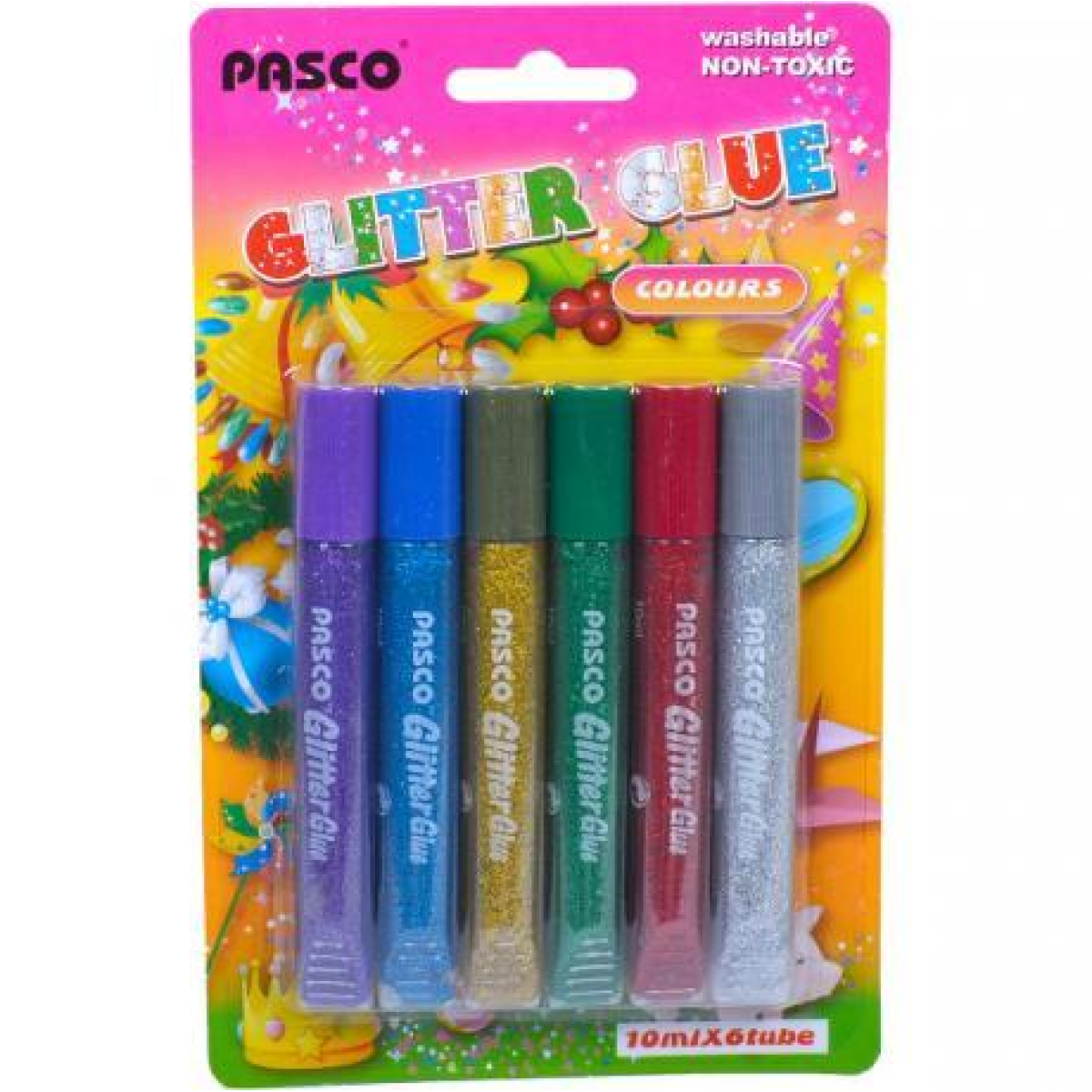 Клей силіконовий з блискітками на картоні “Pasco“ (6 кольорів, 10 мл ) F-019-04 KNZ