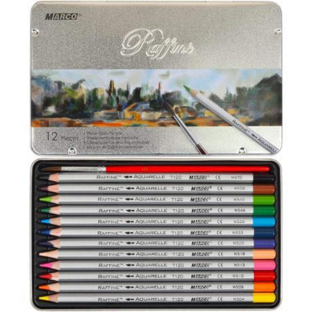 Олівці кольорові акварельні 12 кольорів “MARCO“ Raffine в металевому пеналі 7120-12TN KNZ