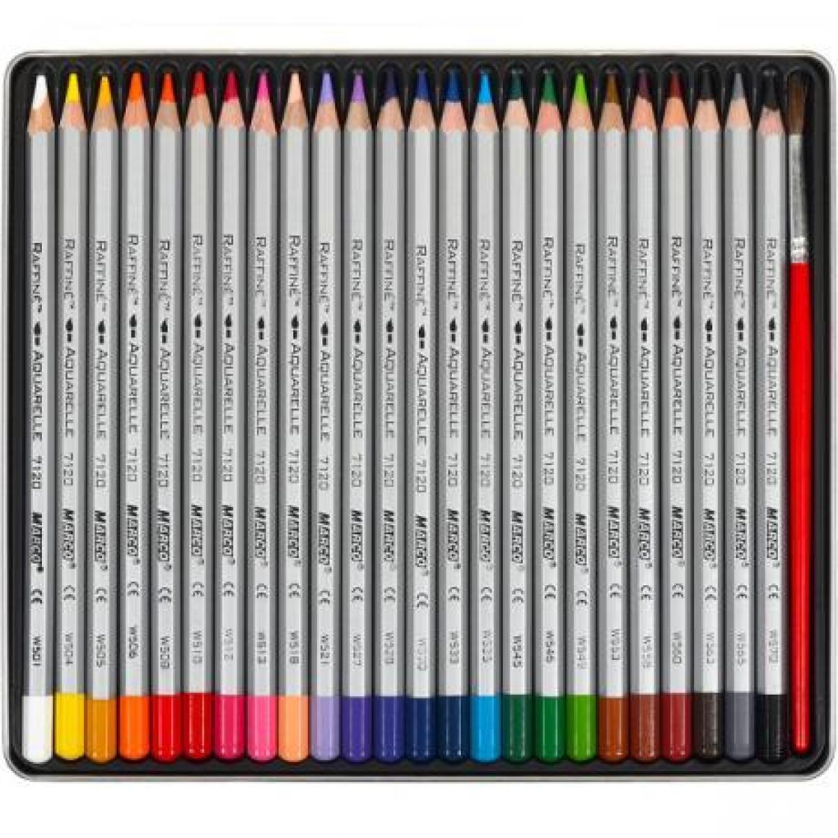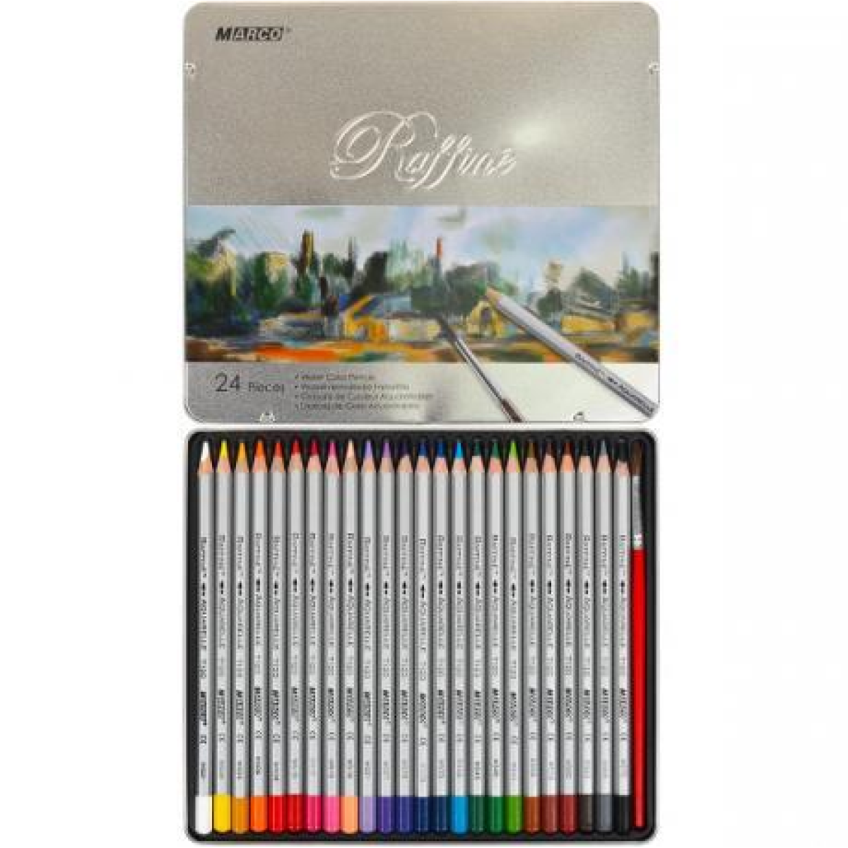 Олівці кольорові акварельні 24 кольори “MARCO“ Raffine з пензликом у металевому пеналі 7120-24TN KNZ