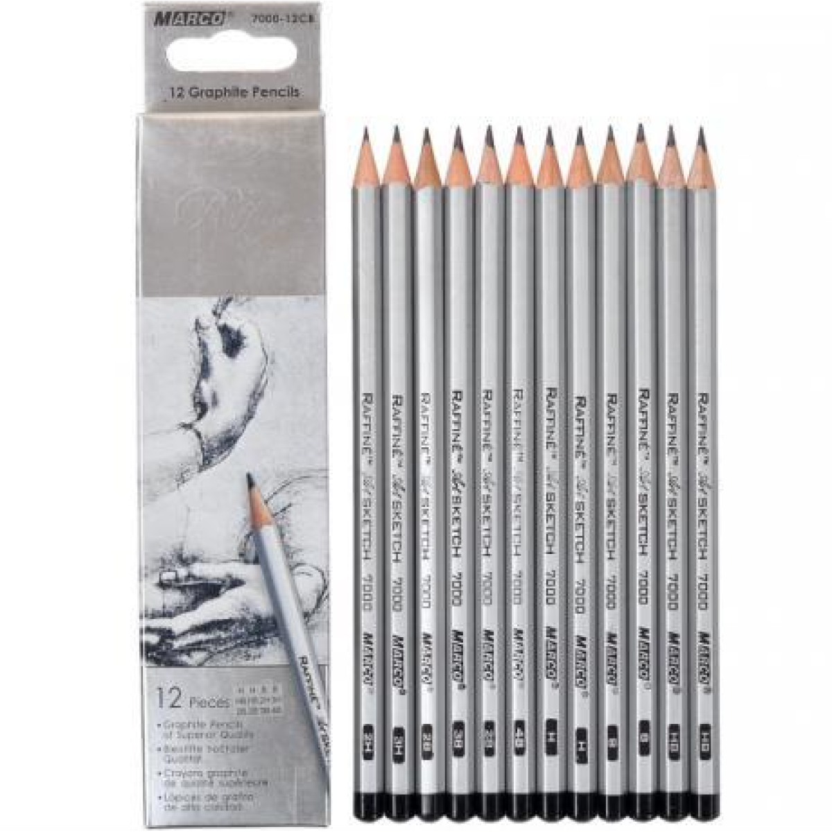 Олівці графітні “MARCO“ Raffine (12 шт, H H, B B, HB HB, 2H, 3H, 2B 2B, 3B, 4B) 7000DM-12CB KNZ