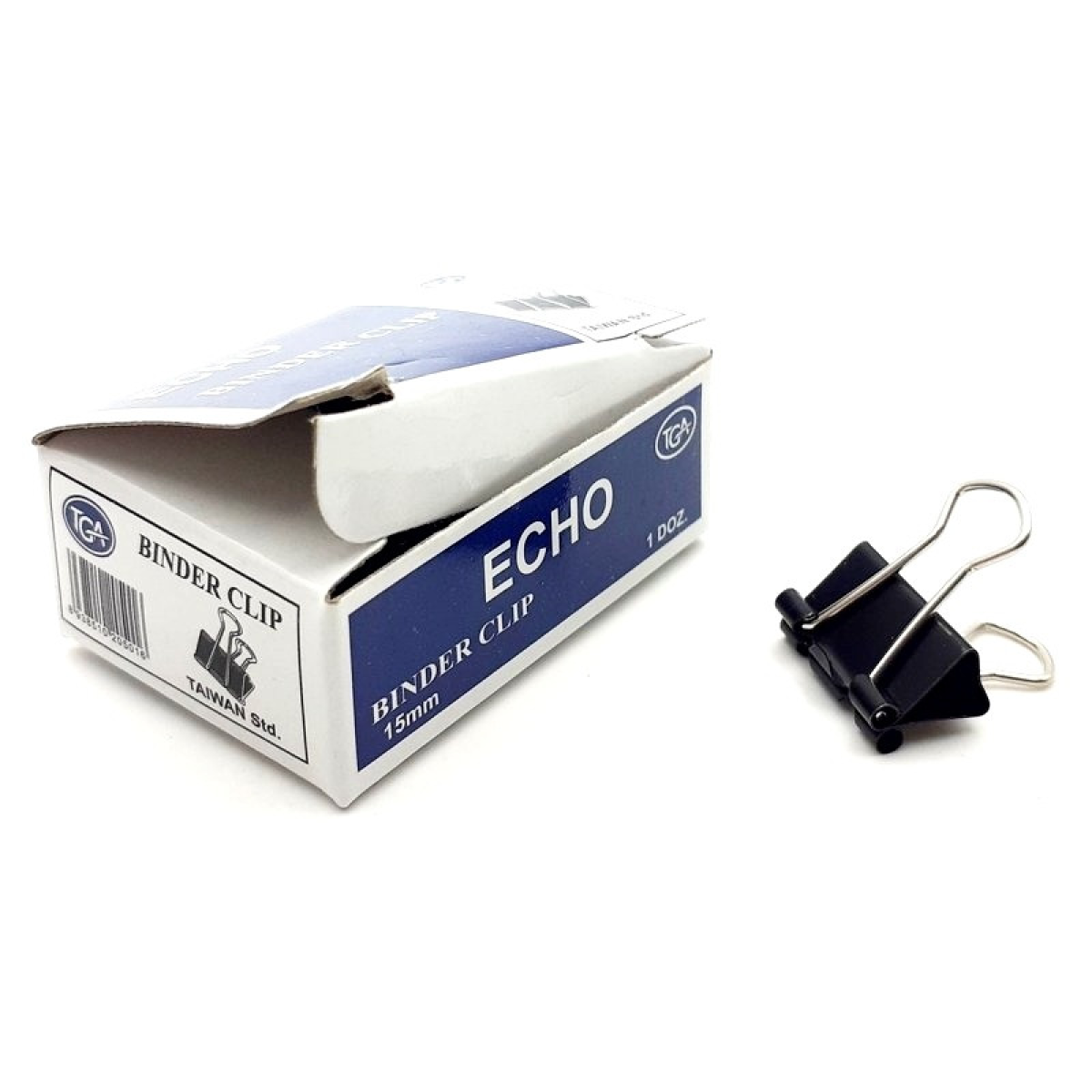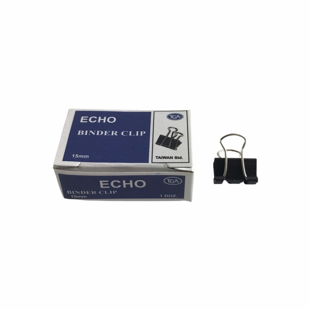 Біндер затискач для паперу 15мм 12шт чорний металевий офісний канцелярський “Echo“ KNZ