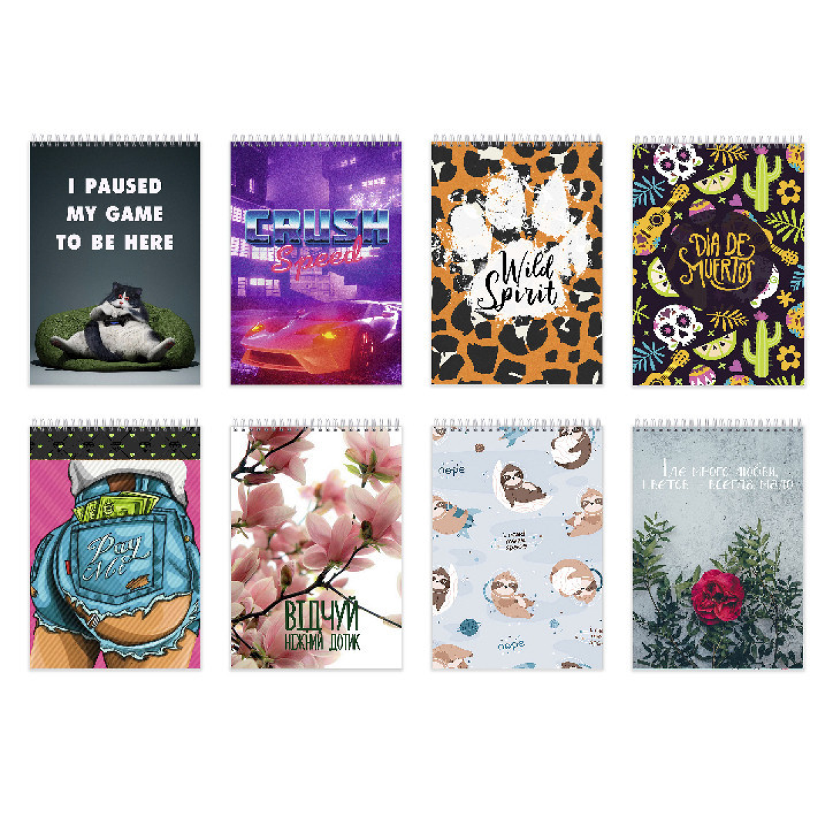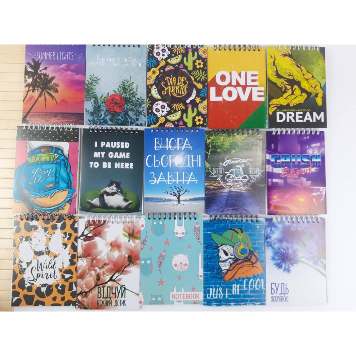 Блокнот для нотаток А6, верхня пружина, 50 листів офсет, клітинка, “Серія Ералаш“ БН-006-МВ KNZ