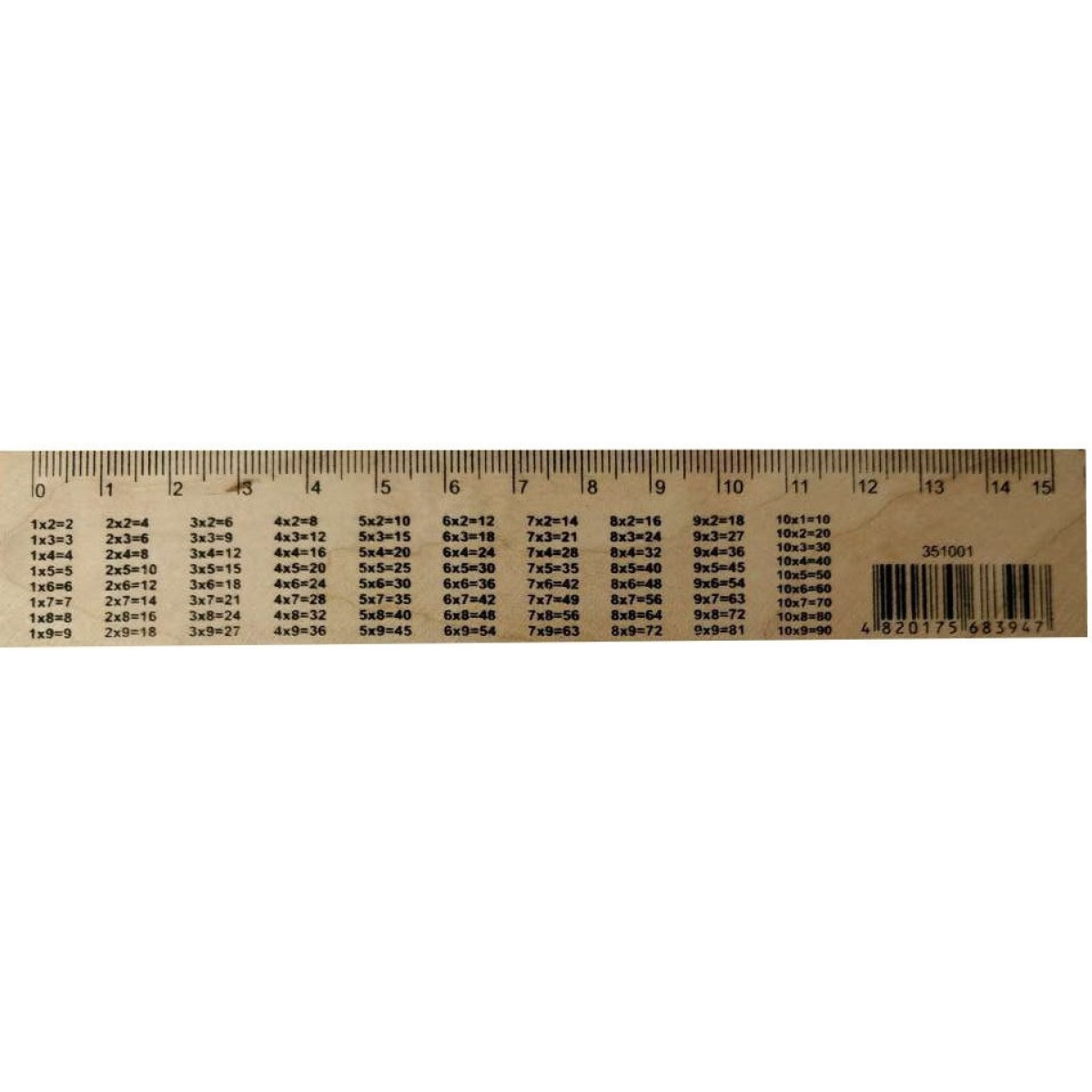 Лінійка дерев“яна 15 см (150 мм) таблиця множення (шовкографія) Ц351001У KNZ
